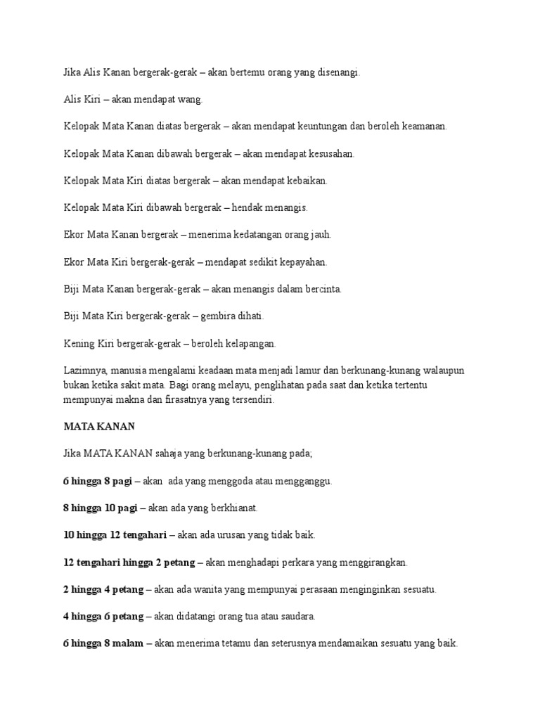 Kelopak Mata Kanan Bergerak Menurut Islam : Iyalah kita ini kan di ajar untuk percaya pada qada dan qadar bukannya pada pergerakan.