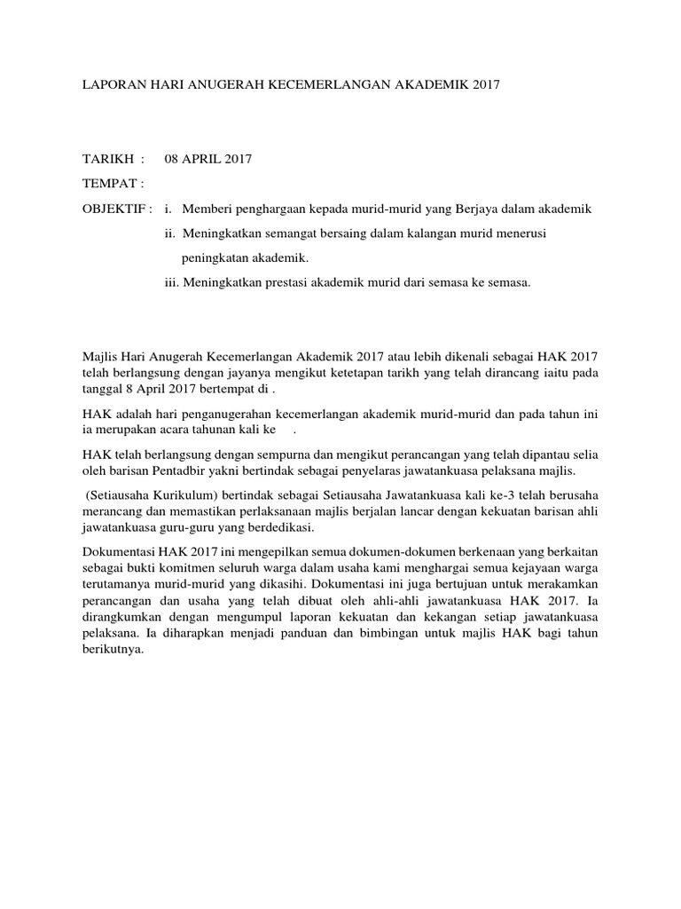 Teks Pengacara Majlis Hari Anugerah Kecemerlangan from imgv2-1-f.scribdassets.com Majlis anugerah kecemerlangan bagi tahun 2020 telah berlangsung di auditorium raden umar, universiti putra malaysia. Tanpa membuang masa lagi, majlis diteruskan dengan penyampaian anugerah kecemerlangan dan penyampaian hadiah bagi pemenang pertandingan inovasi kolej vokasional juasseh bagi tahun 2017. Sewaktu hendak menyiapkan teks pengacara majlis ini, saya cuba juga membuat rujukan dengan mencarinya di internet. Teks mc formal dan non formal, kumpulannya teks mc formal dengan berbagai tema yang sangat cocok bagi anda yang sedang membutuhkan bahan untuk kumpulan, teks mc lengkap dengan berbagai tema! Teks ucapan perasmian hari anugerah kecemerlangan. Dapatkan teks pengerusi majlis anugerah kecemerlangan. Its a wonderful and precious chance for me to be your master of ceremony in this beautiful day on.(hari), (tanggal,bulan,dan tahun) in our big event: Majlis anugerah & penghargaan sekolah (maps) sk kunak jaya 2017подробнее.